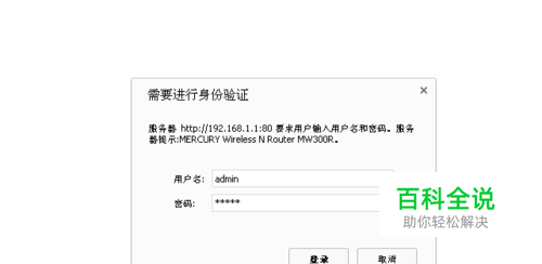 先登录无线路由器的管理界面,下面以水星路由器为例进行介绍,其他的路由器看说明书操作。在浏览器输入192.168.1.1,出现下列界面,输入路由器的用户名,密码,