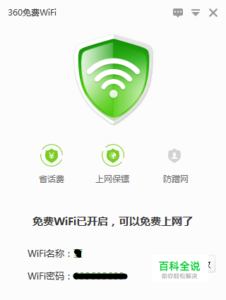打开360免费WiFi,会显示你现在的用户名和密码