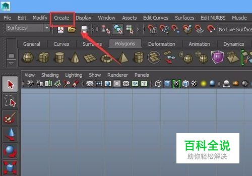 打开maya之后在菜单里找到create选项,如图所示: