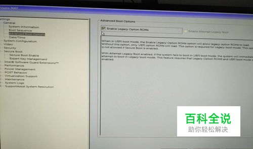 (2) 点击General----Adcanced boot options 选中Enable Legacy Option Roms