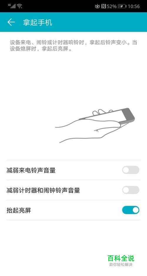 华为手机开启抬起亮屏功能后,当手机熄灭屏幕后,拿起以后就会点亮屏幕。