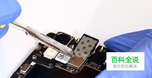 使用拆机撬棒,将前置摄像头上的胶带撕下来。