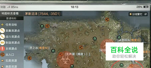首先我们在地图上定位宝箱所在的位置,如下图所示的沼泽山洞