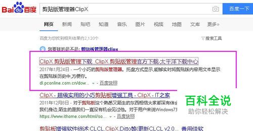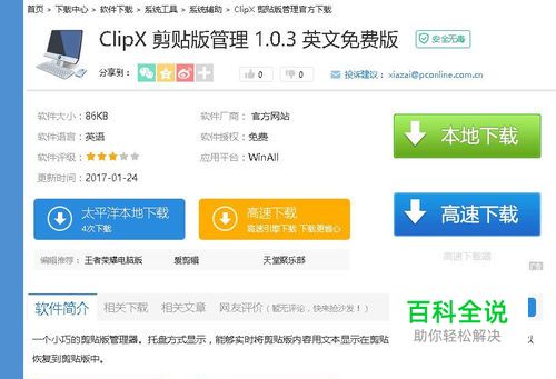 在百度上百度“剪贴版管理器ClipX”,选择官方中文版软件,下载ClipXr软件。