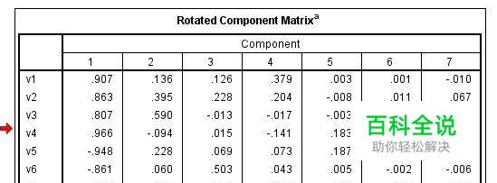 无法判定是否需要正向化怎么办?我们可以预先进行一次因子分析,使用上面表格中的数据,进行一次因素分析,并进行正交旋转。旋转后的成分矩阵,如图所示:我们看到权重最大的因子是成分1,5--7变量为负数,且绝对值很大,所以这三个变量有必要进行正向化。