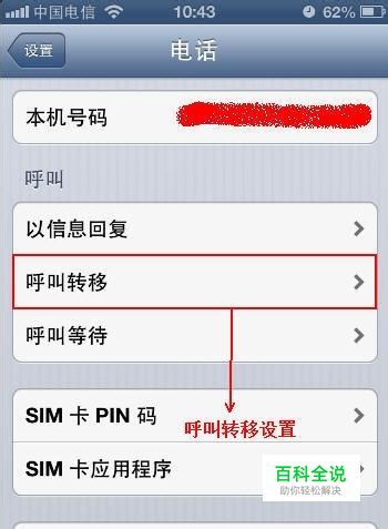 第二步,进入电话设置,找到里面的呼叫转移设置,具体如下图所示: