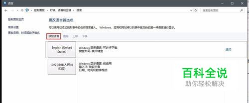 控制面板>添加语言,到达图一位置。然后点击左上角添加语言