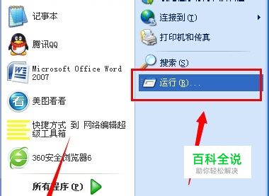 首先,点击电脑中的“开始”程序,打开后选择“运行”: