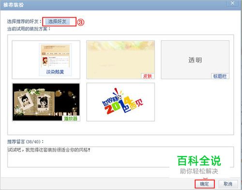 弹出推荐装扮对话框后,您需要选择将您的装扮推荐给哪位好友,最后点击确定;