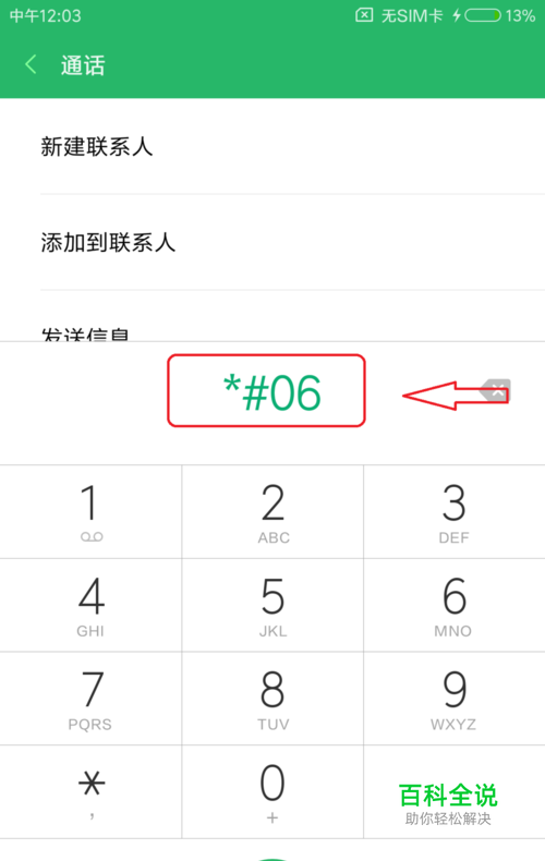 打开手机拨号盘,在拨号盘中输入*#06#,手机会立即弹出IMEI号界面。