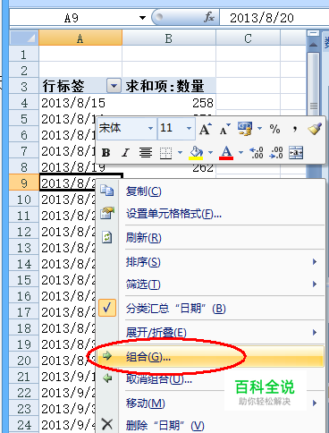 进入透视表页面,在日期列,右键,选择组合,创建组合。