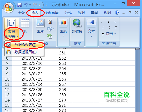 然后选择插入数据透视表,创建含有周数的透视表。