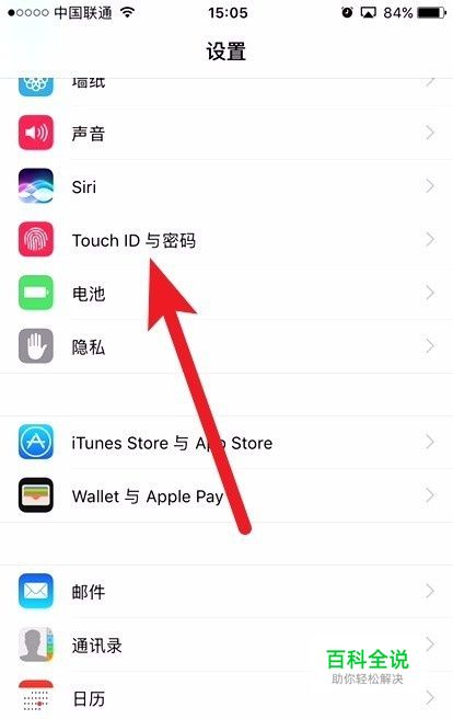 下拉页面找到touch id与密码。