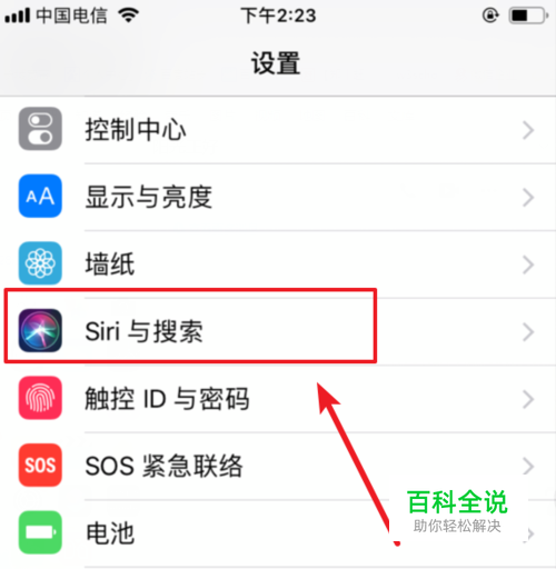 来到苹果设置后,下滑设置界面,点击Siri与搜索的选项进入。