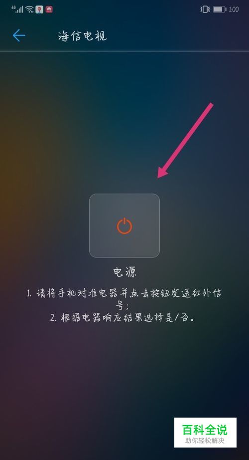 将手机对准电视,点击手机桌面上的“ 电源”按钮,就成功的遥控电视了。