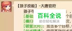 高速高伤的大唐孩纸就是依靠速度的优势快人一步出手,能在对方单位未出手时击杀对方目标单位。不过速度快同时也是缺点,在面对法系群秒时容易承受伤害,会让自己显得十分脆皮。 对于物理输出单位还是很给力的,在对战中还能合理利用孩纸的杀气诀技能,特别是大唐门派,其次在对战中我们还可以依靠他的速度优势来充当一个卡速来补给己方。入场技能和离场技能可以和暴力输出型孩纸选择一样的技能,致命一击和百折不挠