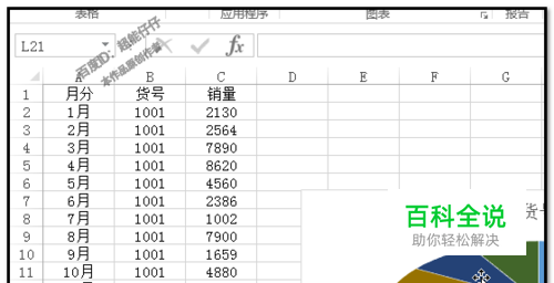 但这个标签数据并不是我们想要的销量数据。那么,我们变更改下标签数字。 从1月这里开始操作。鼠标在1月这一块的标签上点两下,这时,“1001”标签显出一个输入框。