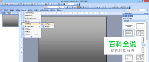 打开ppt,点击工具栏中的”插入——文本框——水平“,把光标放到ppt中,按住鼠标左键,在页面上画出文本框。