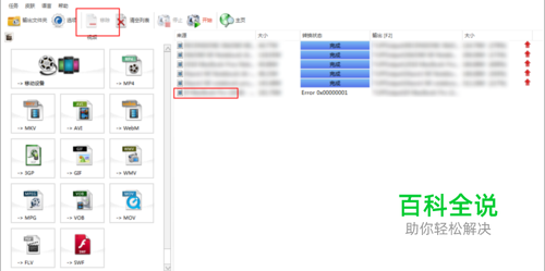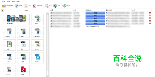 选择无法转换格式的视频文件,点击开始,然后看到无法转换的视频可以用这个软件进行转换格式了的。