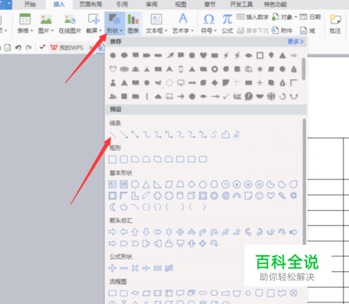 然后将要绘制斜线表头的单元格行高要设置足够高,然后执行插入-形状,选择点击斜线