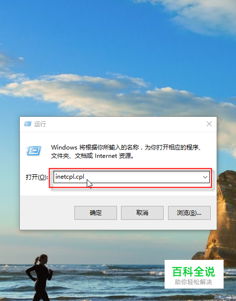我们在键盘上按WIN键+R组合键打开运行窗口。在“打开”一栏的输入框中输入:inetcpl.cpl 然后点击确定打开Internet选项窗口。