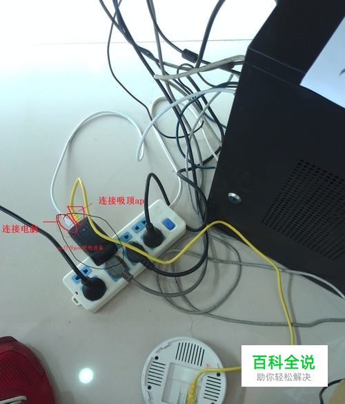 先把吸顶ap 与电脑连接,如图所示,用两根跳线插在ap自带的poe 供电上,一根连接电脑 ,一根连接ap。