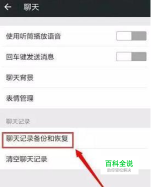 2. 在“聊天”设置界面中,找到并点击“聊天记录备份和恢复”选项菜单。