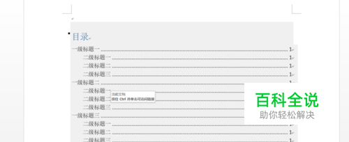 在目录中,如果我们想要进入某个标题所在的正文页面中,使用“ctrl+鼠标左键”进行单击就可以自动跳转至该标题所在的页面。
