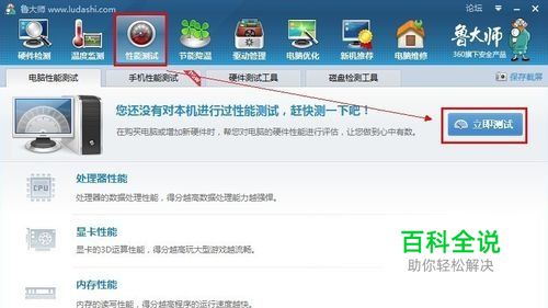 进入鲁大师以后依次点击【性能测试】-----【立即测试】