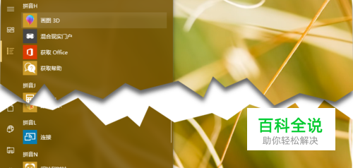 点击“开始”——“所有应用”——定位到汉语拼音“H”的分类,可以看到“画图 3D”的应用项目,点击启动它。 也可以按下 Win + s 组合键调出搜索框,输入“Paint”单词,单击搜索结果中的“Paint 3D”来启动该应用。
