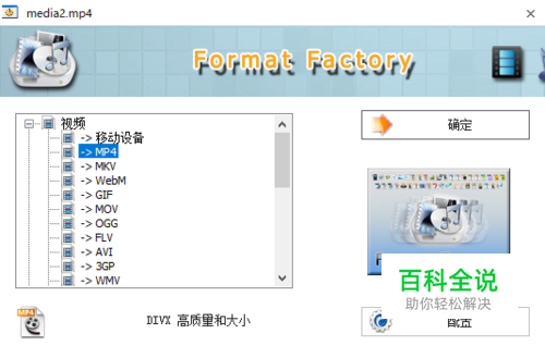 将需要转换的视频文件拖入软件里面,选择需要转换的格式,通常PPT支持MP4的格式