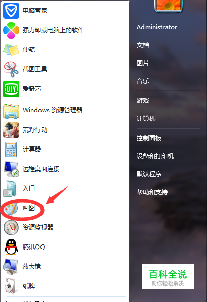 点击“开始”图标,找到里面的“画图”工具,如果没有,就点击最下面的“所以程序”,在里面找到“附件”的文件夹,里面也有“画图”工具。