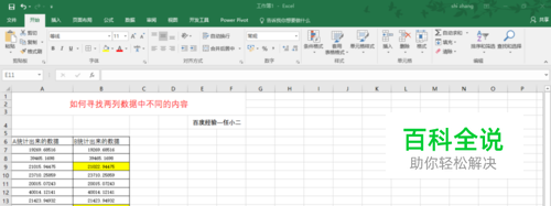 Excel中如何寻找两列数据中不同的内容