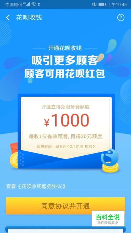 我开通“花呗”的收款,是进入大支付宝页面之后,里面直接提示,我就开通了。