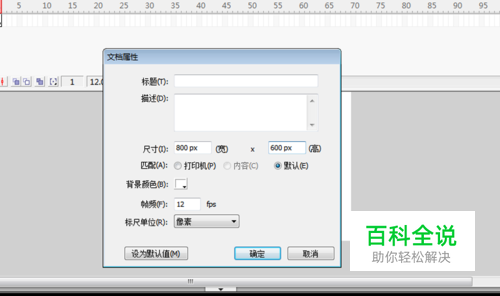 首先启动flash8,新建一个文档,大小设置为800*600,帧频为12,背景颜色为白色。