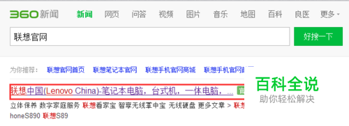 360搜索联想官网,点击出现的第一个条目: