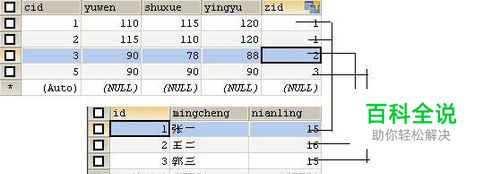 新建一个从表,保存主表中的相对应的成绩。