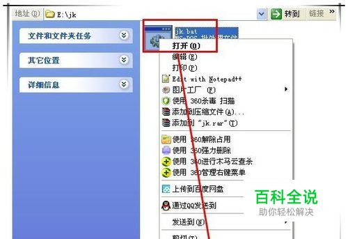 然后,在bat文件上右击鼠标,在弹出的菜单中选择“创建快捷方式”,为bat批处理文件在当前目录中创建一个快捷方式。