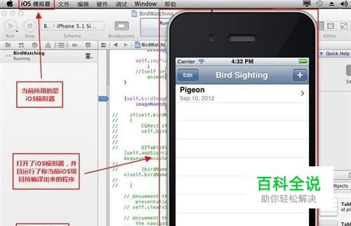 即: iPad iPad(Retina) iPhone iPhone (Retina) 如何打开iOS模拟器 Xcode编译iOS项目后自动打开iOS模拟器(去调试当前程序) 在调试Xcode中的iOS程序时,点击对应的Run: Xcode会去编译当前iOS项目,编译成功后,会自动并调用iOS模拟器,并运行相应的编译出来的程序:
