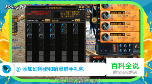 添加右侧物品栏中的幻兽蛋和暗黑猎手礼包,礼包提供加速孵化效果。