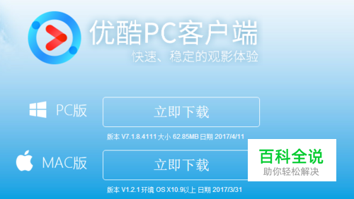 首先我们需要下载优酷客户端,进入官网,然后如图所示,在上面的最右侧的下载上,然后有PC版和MAC版。根据我们的电脑选择下载就好了。提示不要下载到C盘,因为默认下载安装一般都是在C盘。