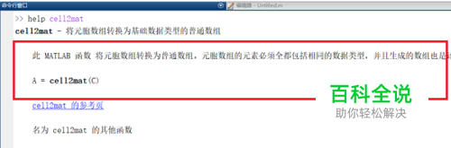 第二步我们使用cell2mat()函数将元胞数组转换成矩阵之前,可以先在命令行窗口help cell2mat,查看函数的用法,这里需要注意的是使用cell2mat函数,cell中的数据类型必须一致,生成的新矩阵也会是cell类型中数据的类型,如下图所示: