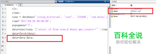 第一步打开matlab之后,新建一个脚本,这里是通过从数据库获取数据,data数据格式是元胞数组cell类型,如下图所示: