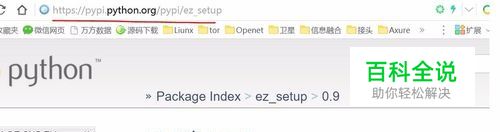 下载ez_setup-0.9,地址 https://pypi.python.org/packages/ba/2c/743df41bd6b3298706dfe91b0c7ecdc47f2dc1a3104abeb6e9aa4a45fa5d/ez_setup-0.9.tar.gz
