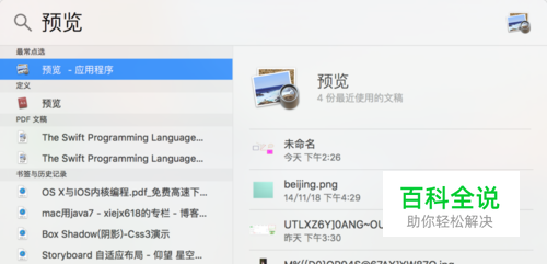 按“command+空格”启动Spotlight输入“预览”后按确定启动“预览”工具。也可以双击一个图片文件快速启动“预览”。