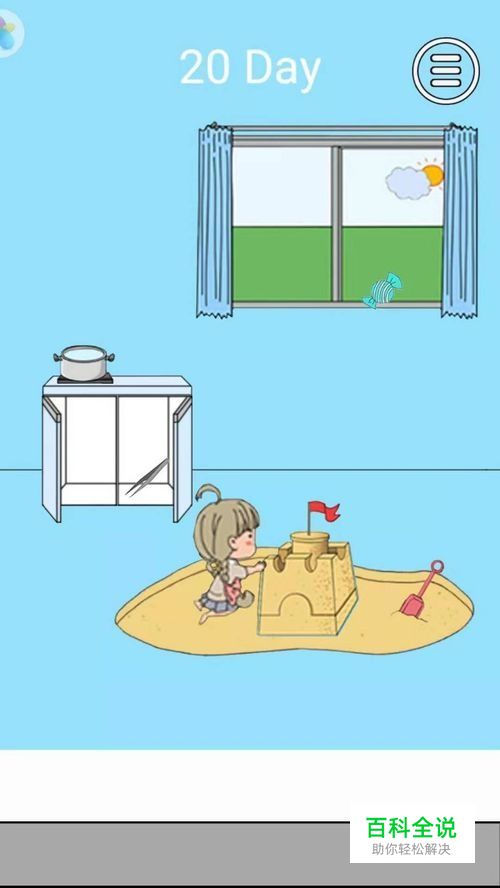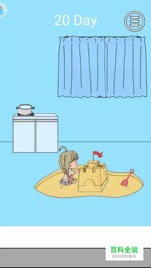 使用铲子铲掉沙子搭建的城堡,发现泡面在里面。