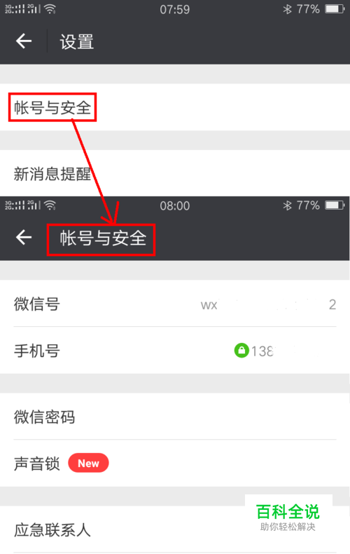 在功能设置功能窗口页面再点击了帐号与安全功能按钮进入了微信帐号与安全的功能菜单窗口页面.