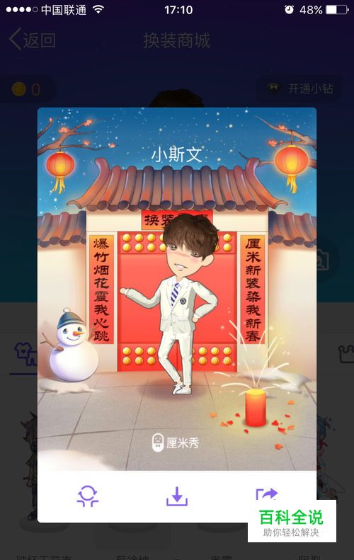 选择好图案,然后点击 开启厘米秀 点击图案右下角的按钮,可以预览效果