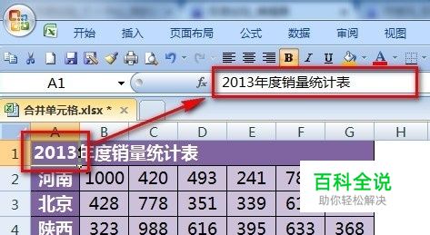 如下图,在 A1输入: 2013年度销量统计表