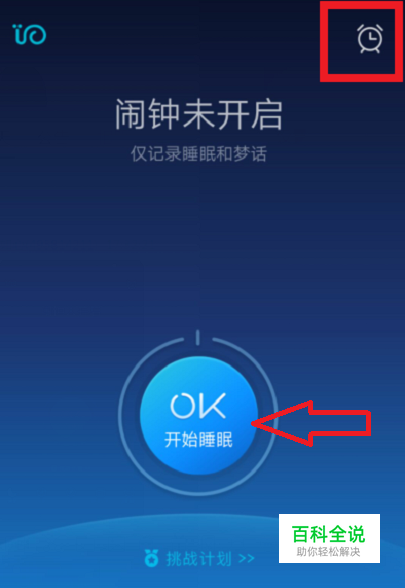 打开“蜗牛睡眠”的主画面后,映出此图,在右顶部的白形的闹钟轮廓,要事先点“开始睡眠”再按这个。